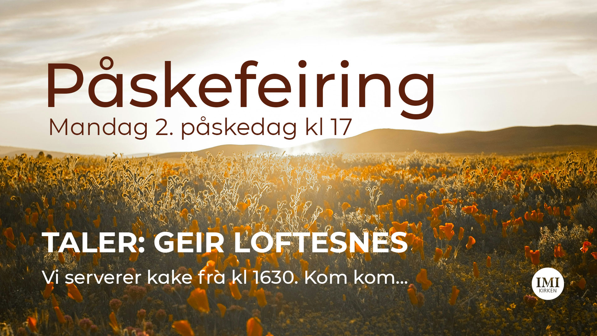 Velkommen til gudstjeneste i IMI-kirken søndager kl. 11 og kl. 18. På gudstjenesten kl. 11 har vi egne gudstjenester for barn fra 1 år - 7. klasse.